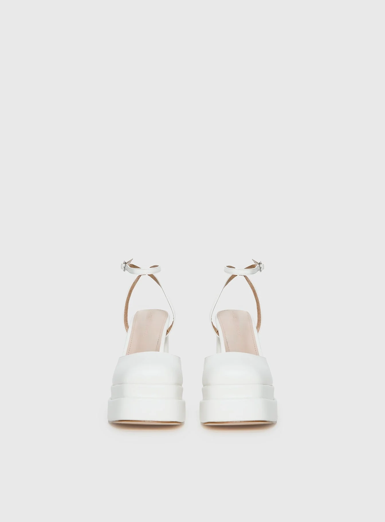 - Faux leather material, closed toe, block heel, ankle buckle fasteningÂ