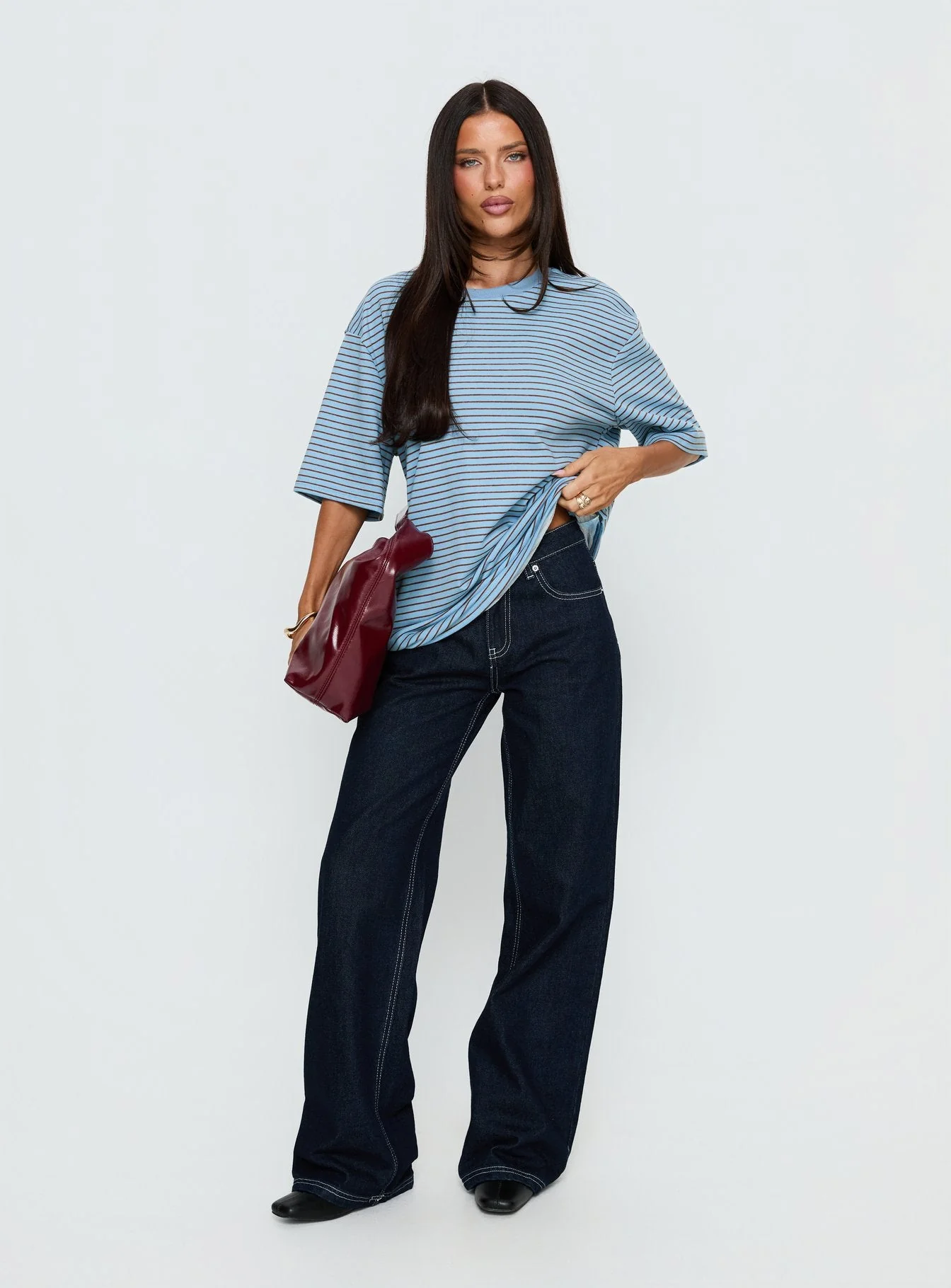 Kaitlan Short Sleeve Tee Blue Stripe